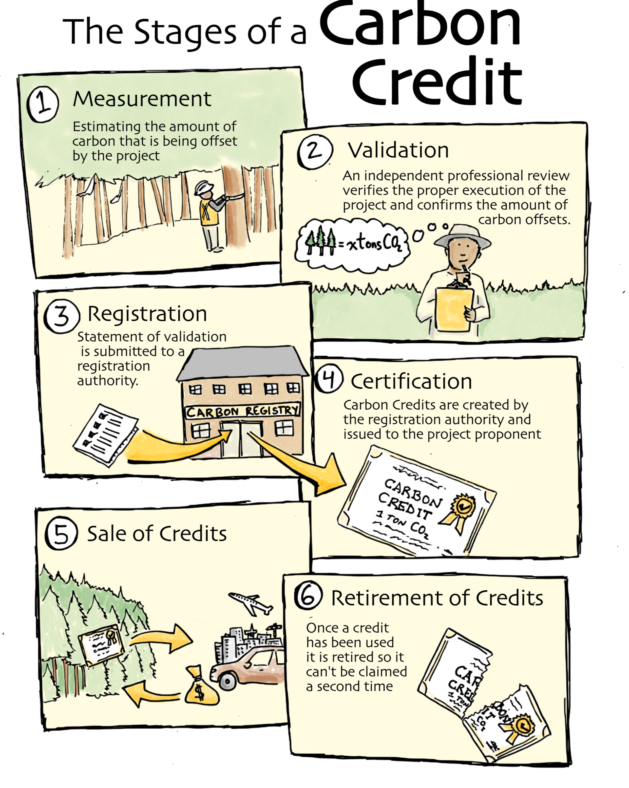 A carbon credit can be purchased, traded or sold but until it is retired, it does not offset any emissions.
